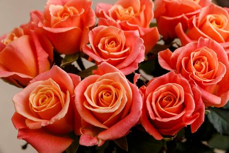 Bouquet of orange roses close-up