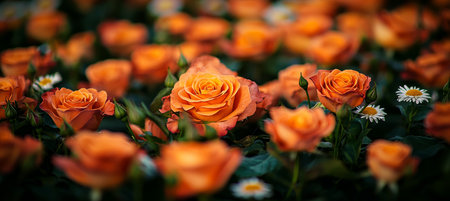 A Field of Orange Elegance Vivid Roses in Full Bloom, Creating a Stunning Floral Display