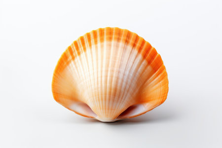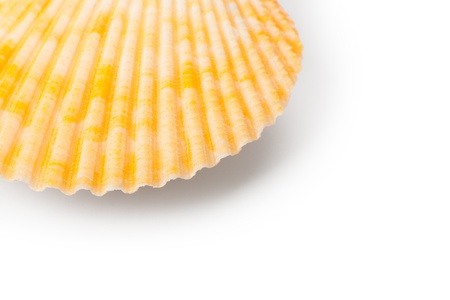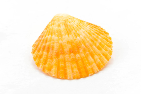 Aquatic natural sea shell. Close-up of a scallop, white background.