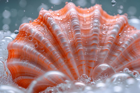 A captivating scene showcasing a marine shell's rugged exterior contrasted by a vivid, luminous orange interior, emphasizing intricate natural patterns against a bla