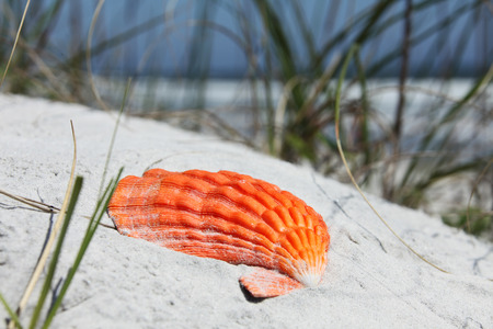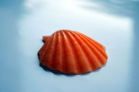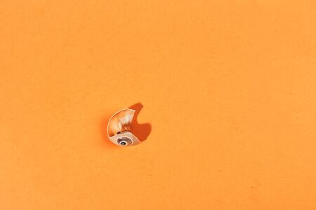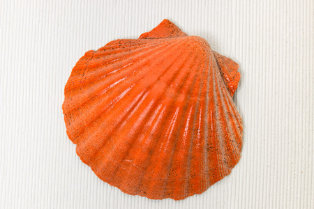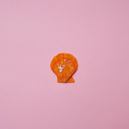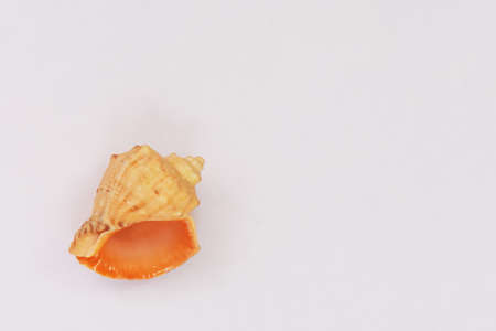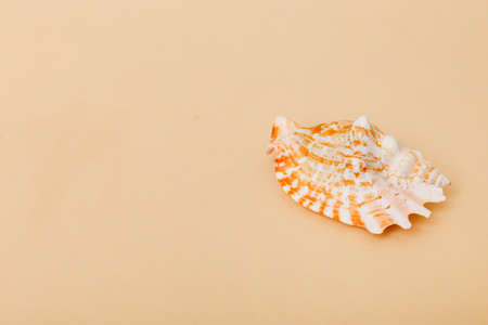 Beautiful white seashell isolated on an orange summer background textured for banner design copy space for text