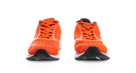 sport or running shoes on white background front view with copy space