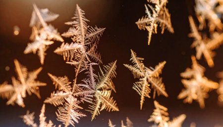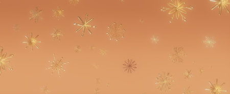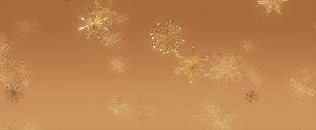 Golden snowflakes falling on a warm brown background, a beautiful and abstract illustration.