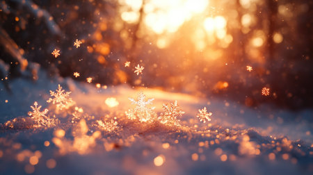 Snowflakes glistening as sunlight reflects on them, creating a stunning winter scene