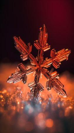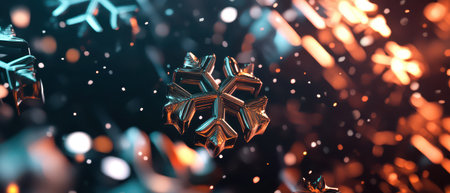 Explore the enchanting beauty of a sparkling snowflake against a warm New Year themed background, illuminated by soft bokeh lights, perfect for seasonal celebrations.