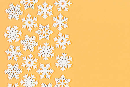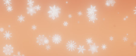 A digital image of snowflakes falling on a light orange background. This image represents the winter season, Christmas, and the holidays.