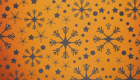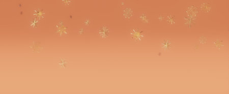 A minimalist image with golden snowflakes scattered on an orange background.
