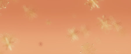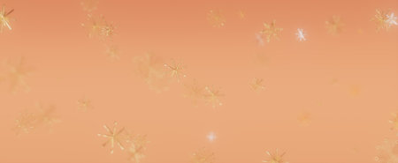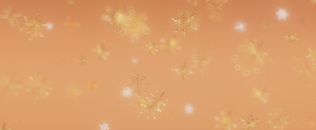 Abstract gold snowflakes are falling on a peach background