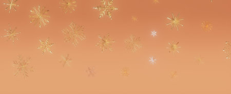 An abstract background with golden snowflakes falling against a soft peach gradient, creating a festive and elegant winter scene.