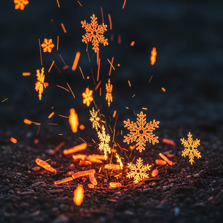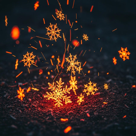 snowflakes and sparks from a fire on a dark background