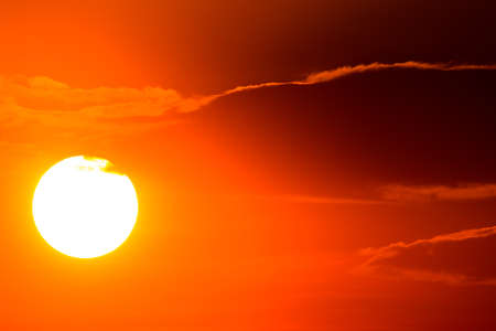 Orange color sky with big sun on sunset use for background