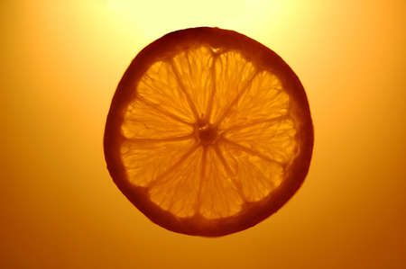 single slice of fresh orange on orange background