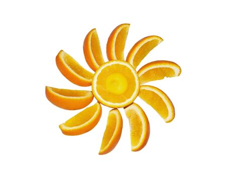 Round orang slice isolate on colorful background.