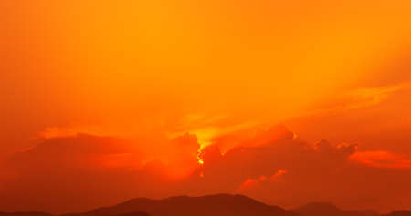 Gorgeous panorama scenic of the sunrise or sunset with sunlight and cloud on the orange sky