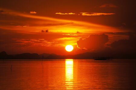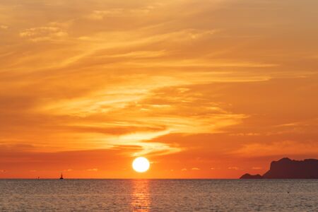 Beautiful red and orange sunrise over the sea. Beautiful seascape scenery, Amazing light of nature sunset background