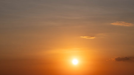 Panoramic view of clean sky and sun during sunset. Sky as background, space for text.