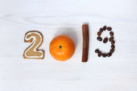 The new year 2018, the tangerines on wooden background