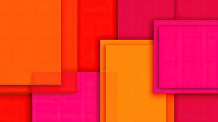 This vibrant abstract composition features a captivating arrangement of colorful geometric shapes in layers of red, pink, orange, and yellow tones, perfect for modern art design.