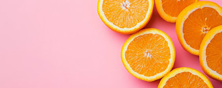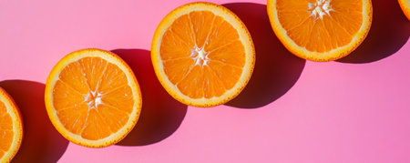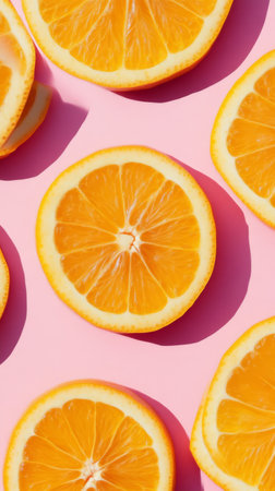 Sliced oranges on pink background, vibrant and fresh concept