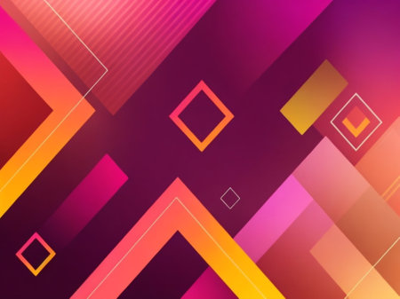 This image features a striking gradient of colors transitioning from bright yellow to deep purple. The design includes overlapping geometric shapes, creating a sense of depth and movement. Subtle circuit-like lines are embedded within the shapes, adding a futuristic touch. The overall composition evokes a sense of modern art and technological innovation.