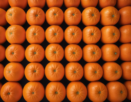 Uniform arrangement of vibrant and fresh tangerines. The oranges exhibit a natural and appealing look ideal for various applications including food advertising and nutrition-focused content
