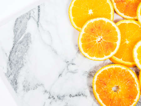 pattern of sliced orange background. Orange fruit top view with copy space.