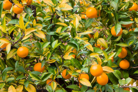 Orange fruits on trees in winter time, Citrus sinensis