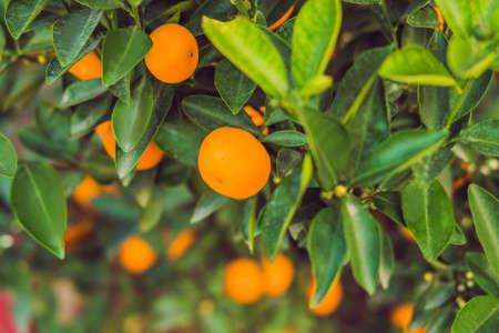 Close up Vibrant orange citrus fruits on a Kumquat tree in honor of the Vietnamese new year.