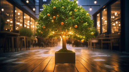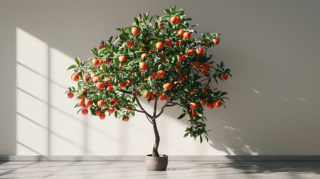 Beautiful tree with mature orange fruits, generative AI