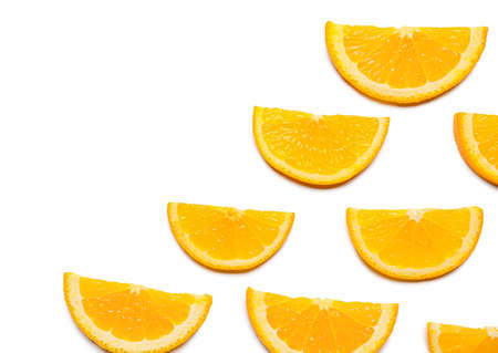 Slices of orange on a white background.
