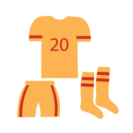 Football player clothing. T-shirt, balls and knee-highs are attributes of the clothes of the game of football. Design element. Vector flat illustration.