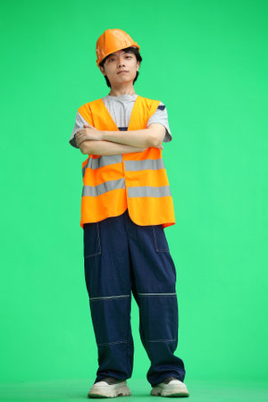 Friendly smiling asian female construction engineer, architect in safety helmet, gloves and glasses waving hand, saying hello, greeting investors or clients at building area, white background
