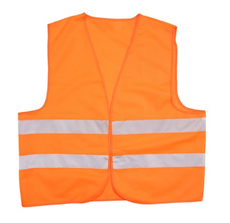 protective vest, reflective clothing, reflective vest on white wooden background. top view and copyspace, safety first concepts