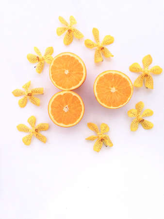 juicy Oranges sliced and arranged on white background, healthy fruit concepts
