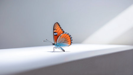 Butterfly perched on minimalist background, that exudes sophistication and refinement. Generative AI