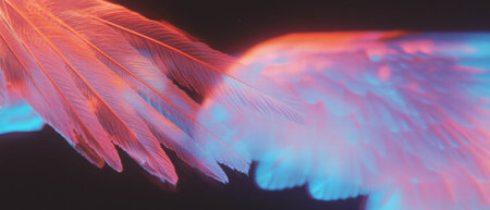 Magic wings spreading in a mystical glow with vibrant feathers on a dark backdrop