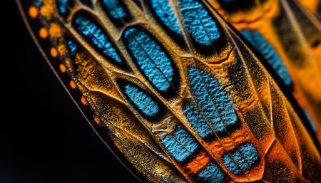 Vibrant butterfly wing pattern showcases beauty in nature fragility generated by artificial intelligence