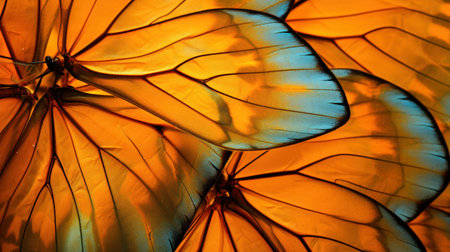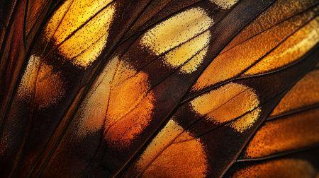A stunning close-up of a butterfly's wing, revealing intricate details and vibrant colors. The image showcases the beauty of nature's artistry.