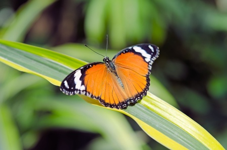 Beautiful orange Cirrochroa aoris butterfly to green leaf in in Ban Krang Camp, Kaeng Krachan National Park in Thailand