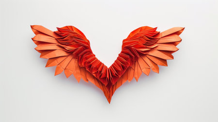 Origami red heart takes flight with delicate wings on a pristine white surface, Ai Generated.