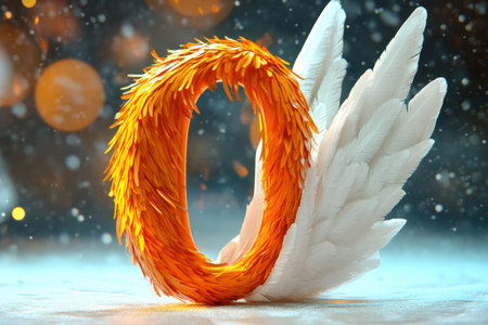 A white and orange letter O is surrounded by a winged creature. The image has a whimsical and playful mood, as the letter O is transformed into a dragon-like creature