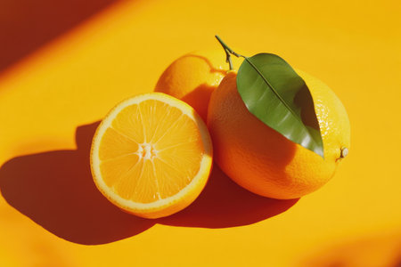 Citrus Bliss: Juicy Oranges and Half with Leaf in Close-Up