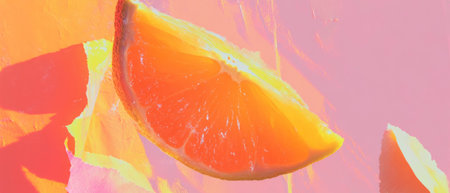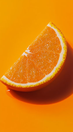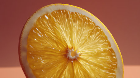 Close-up of an orange slice on orange background, vibrant freshness concept