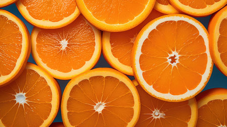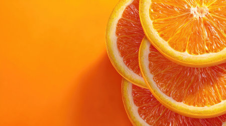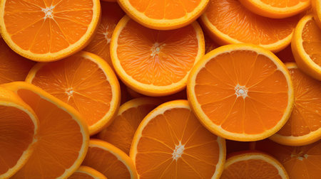 This image features bright orange slices stacked neatly against a vivid orange background, showcasing the freshness and vibrancy of citrus fruits ideal for culinary and lifestyle projects.