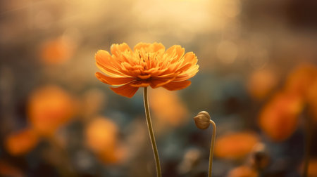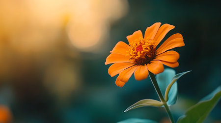 AI Generated. single zinnia flower orange blossom garden high angle perspective warm