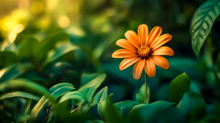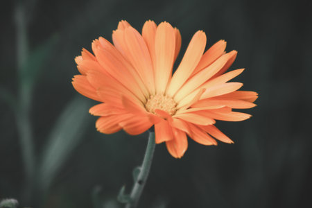 Bright orange flower blooming in the soft light of an evening garden during springtime