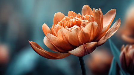 Exquisite Peach Tulip Bloom on a Soft, Dreamy Teal Background