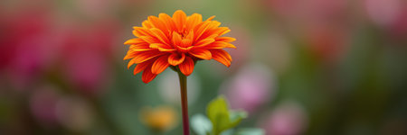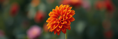 Bright orange dahlia flower blooms in a garden filled with vibrant colors during a sunny afternoon