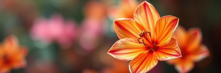 Vibrant orange flower blooms in a colorful garden during springtime with soft blurred background