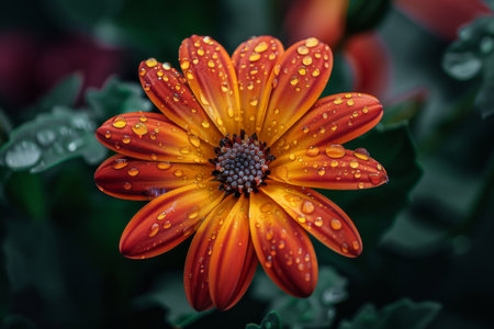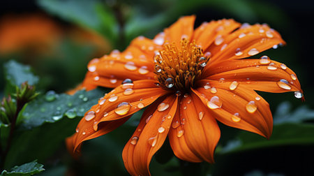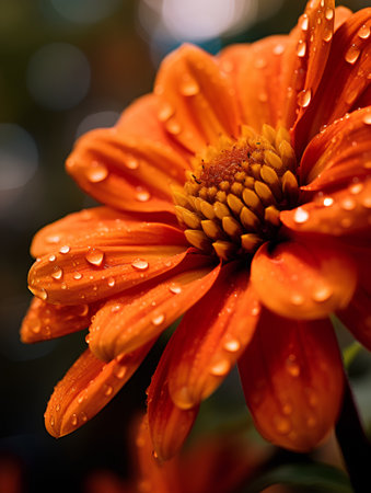 Vibrant orange flower with water droplets